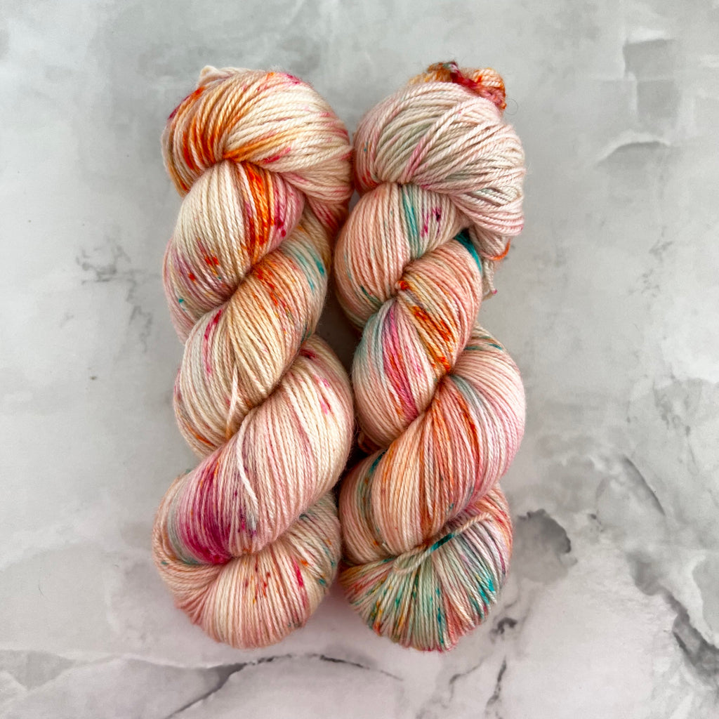 España (115g) + Floraison (25g) - Ensemble de laine pour bas SW BFL/nylon, prête à partir