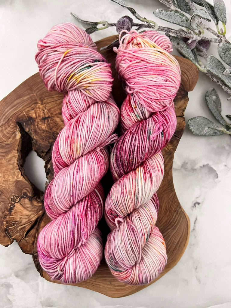 OOAK Noël rose - Laine grosseur fingering SW merino/nylon, prête à partir